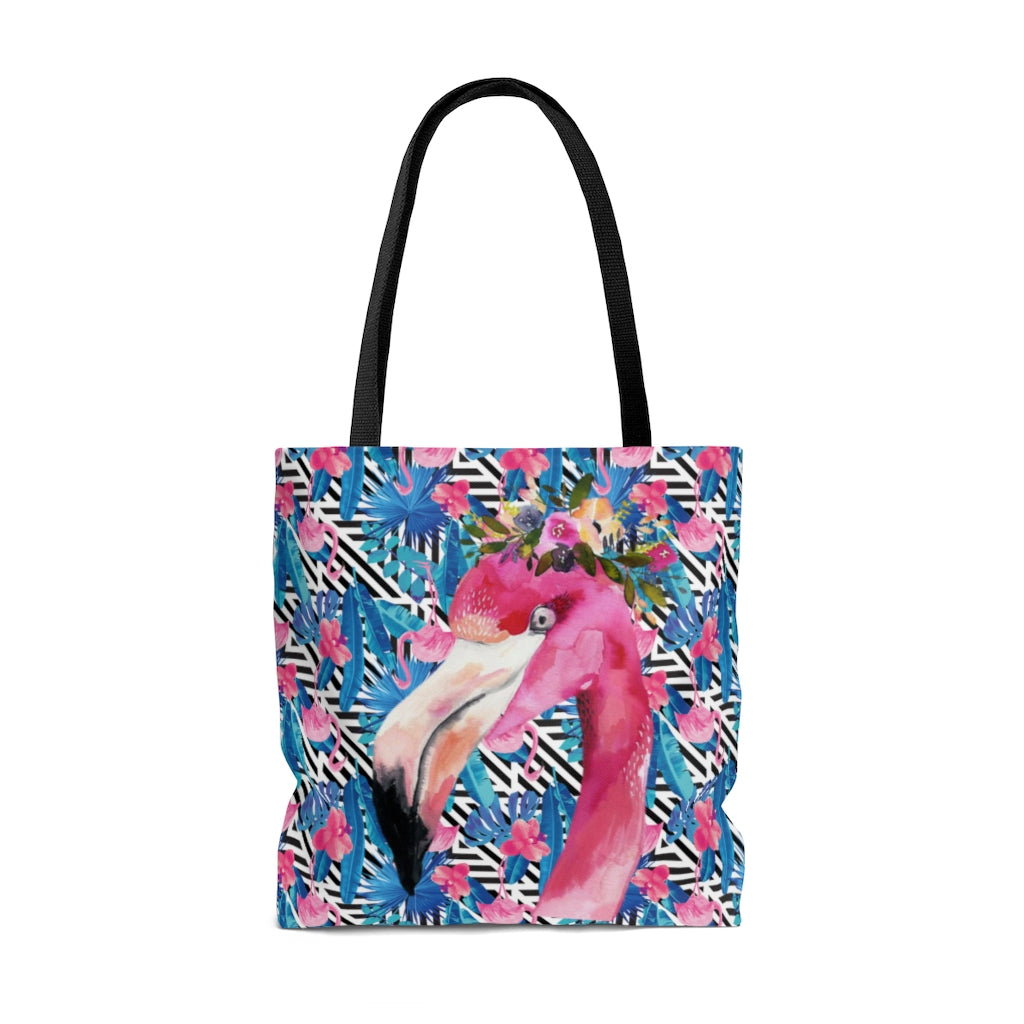 A group of two or more flamingos is called a flamboyance, the same term applies to Miami's stylish women. Sitting front row during Miami Swim Week you'll find a flamboyance of Stylists, Bloggers and Industry professionals. You might also find our collection strutting down the runway. Our practical high quality Tote Bags are available in three sizes. Our print provides comfort with style on the beach, poolside or out in town. Made from reliable materials, lasting for seasons.