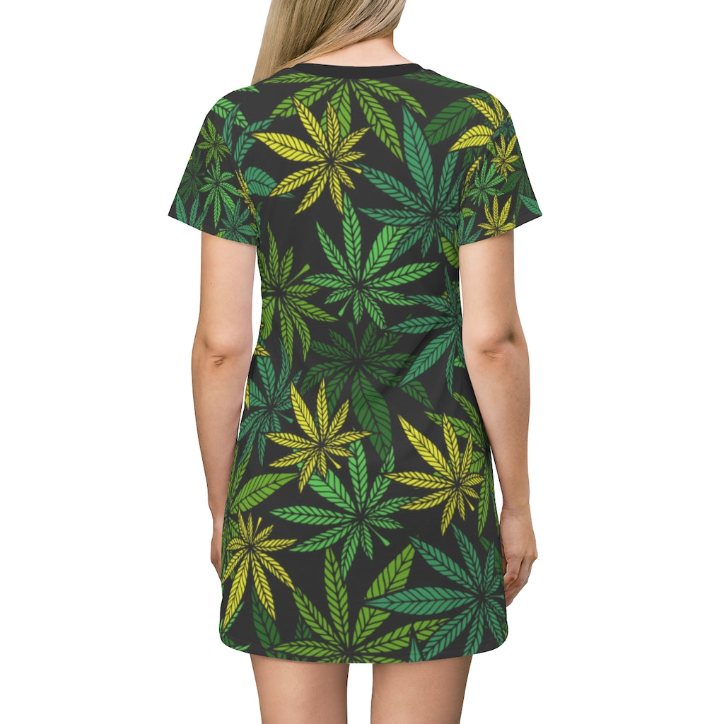 Green Cannabis print Feminine Adult T-Shirt Dress