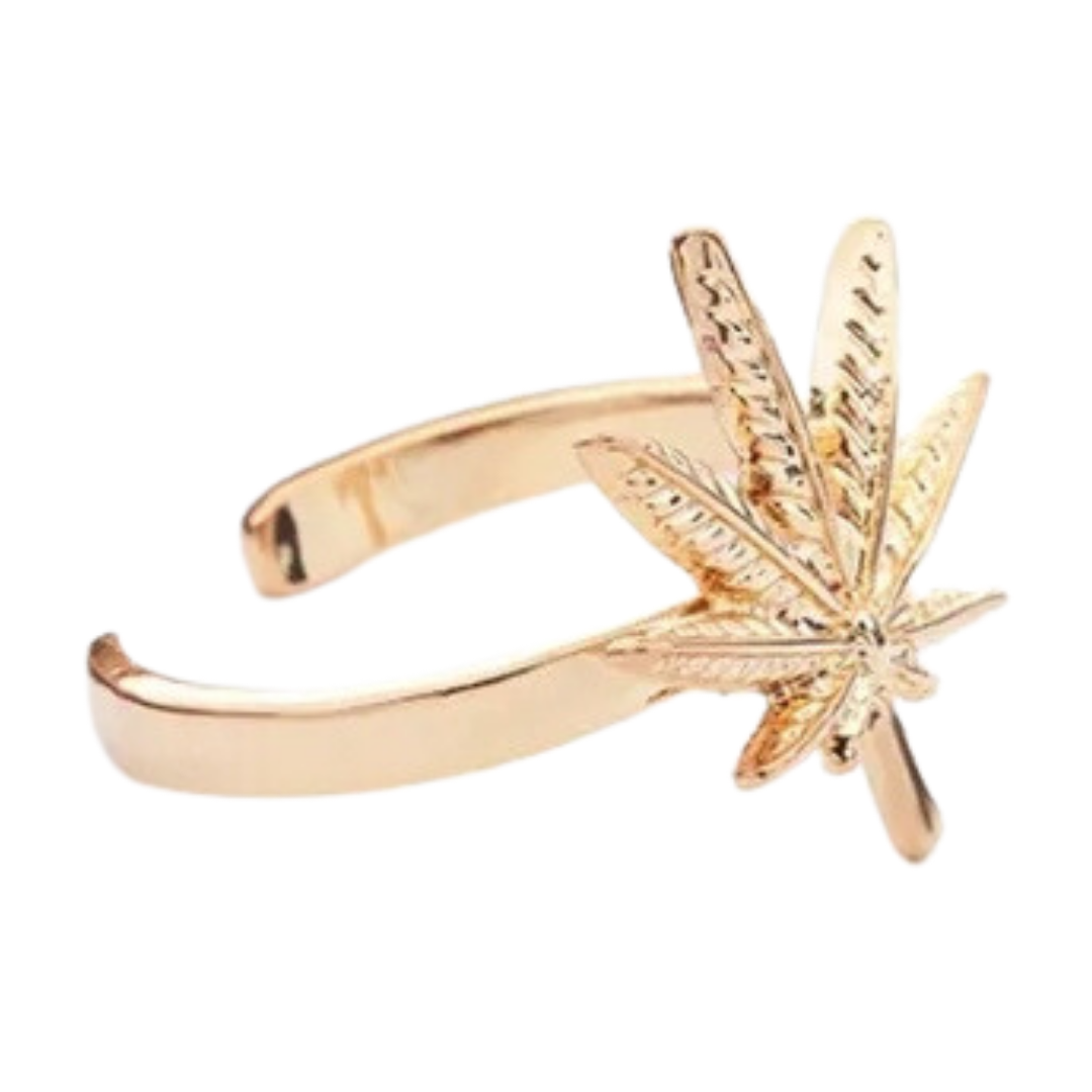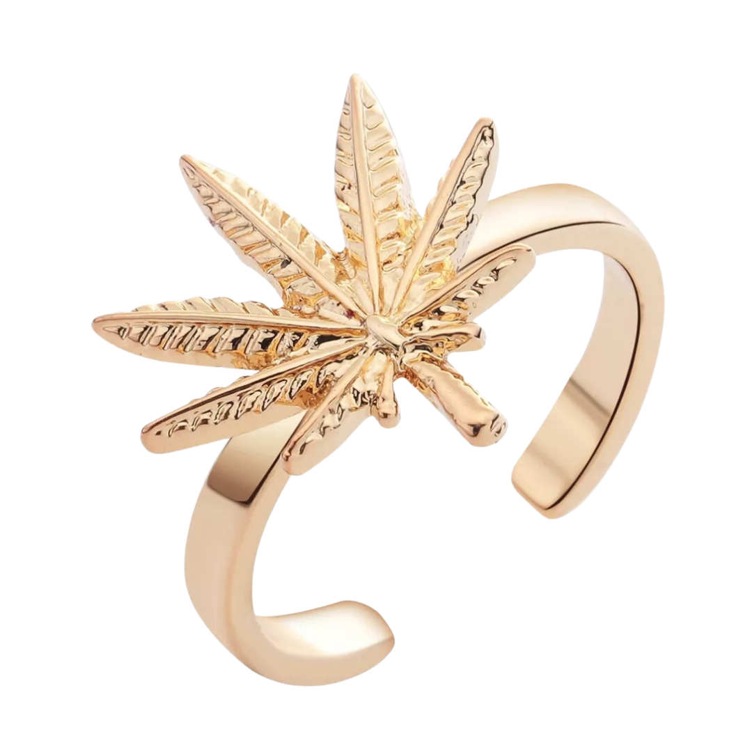 The Flower Power Ring is a stylish accessory that features a beautiful cannabis leaf and it is  designed to be adjustable. It comes in a range of gold and silver colors, allowing users to customize the look of their ring to fit any style. The ring itself is durable and lightweight, providing the perfect balance of strength and comfort. The adjustable design allows for easy fitting, making it easy to find the perfect fit for any occasion.